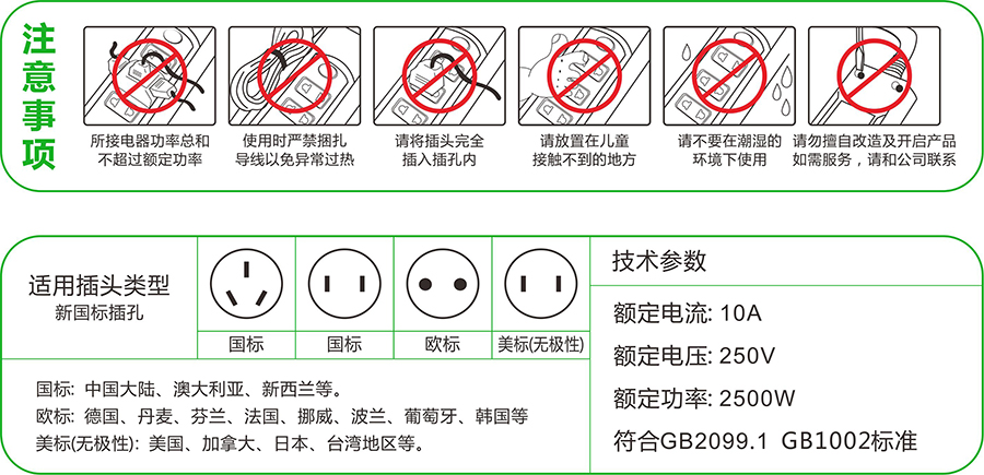 同極銅套一體沖壓成型、無焊點連接。銅套溫升低,產品可靠性能高。 高導電磷銅片鍍鎳處理,超長使用壽命,具有良好的耐磨性和導電性,插撥次數(shù)達到10 000次以上。 面板采用高性能阻燃工程塑料(俗稱防彈膠), 它富含絕氧因子, 遇明火迅速分解,可隔絕氧氣、高阻燃、耐高溫、抗震、耐摔、阻燃級別達到美國UL94-V0級。 所采用導線、插頭均按 CCC 認證標準嚴格執(zhí)行,符合國家標準。 在2500W額定功率下持續(xù)使用,不易軟化變形,讓交流電傳輸更為理想。